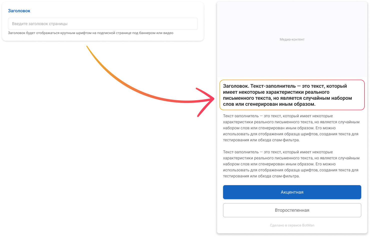 Он отображается крупным шрифтом и помогает сразу объяснить, о чём ваша страница: приглашение, акция, вебинар, подарок, инструкция и т. д. Поле заголовка необязательное, но в большинстве случаев его используют.