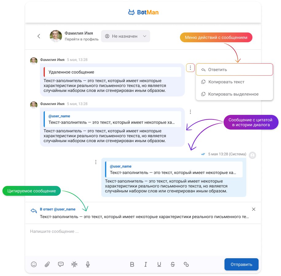Иногда в переписке важно показать, на какое именно сообщение вы отвечаете — для этого есть функция цитирования.