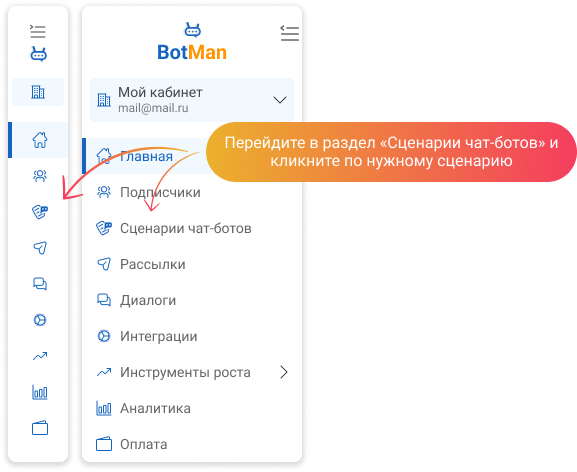 Перейдите в раздел «Сценарии», выберите нужный сценарий и откройте. Если сценарий ещё не опубликован — нажмите «Опубликовать».