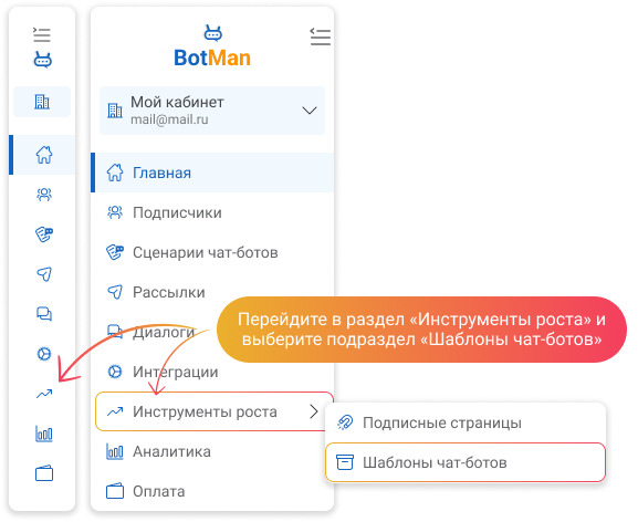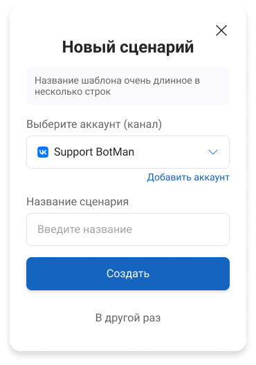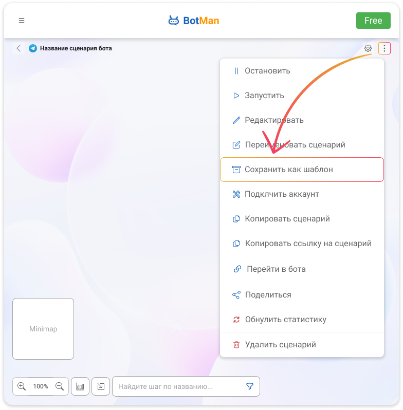 Шаблон — это неизменяемая копия сценария, хранящаяся отдельно от ваших рабочих ботов. Оригинал сценария при этом остаётся доступным для редактирования и использования.
