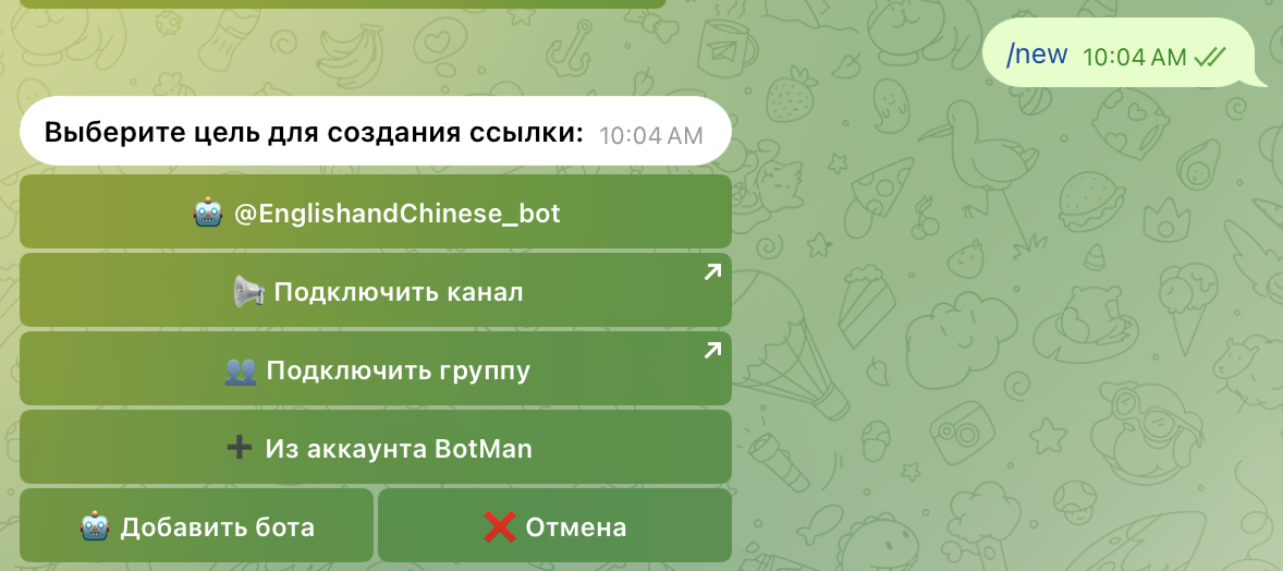 1. Введите команду /new в боте.