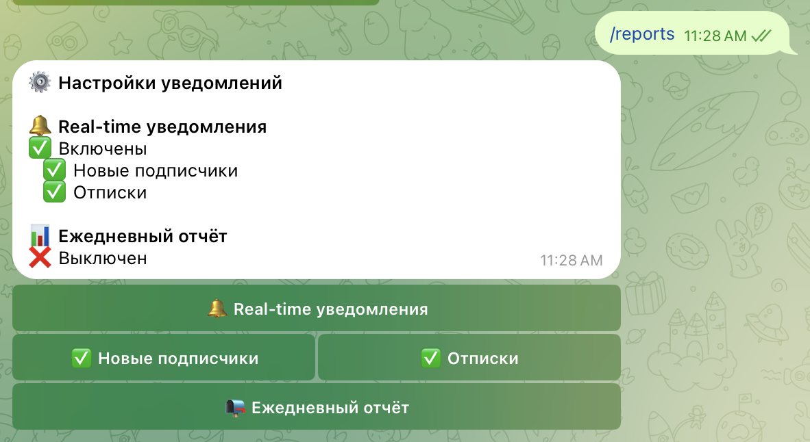 ✔ Это обеспечивает максимально точный трекинг внутри Telegram