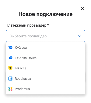 Откройте раздел "Интеграции" → вкладка "Платёжные провайдеры"→ Новое подключение