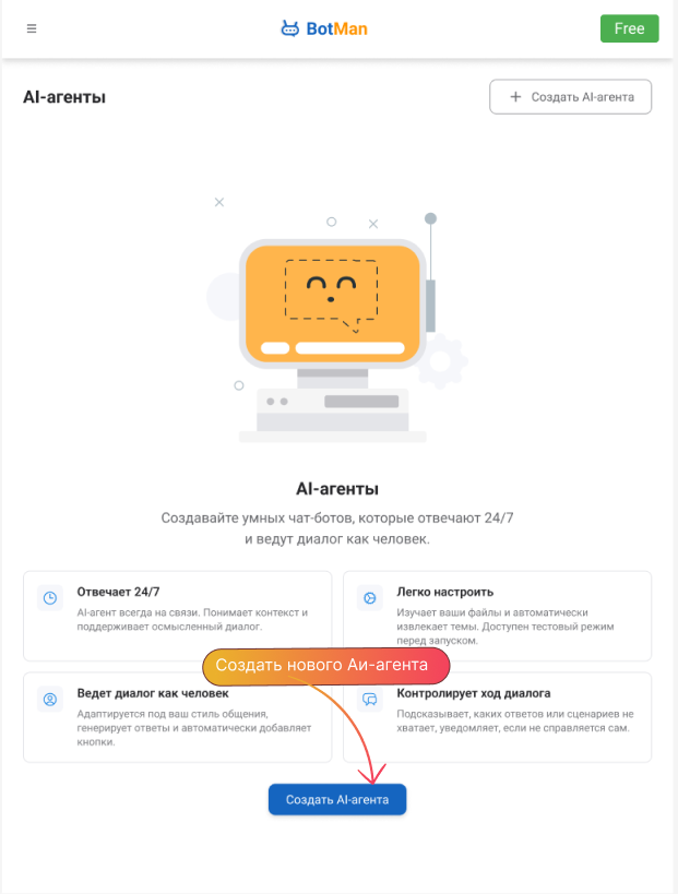 Откройте раздел «AI-агенты» → «Создать AI-агента»