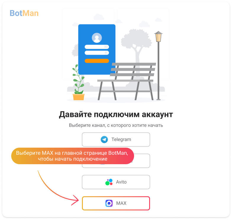 BotMan проверит токен и попытается связать канал с вашим ботом MAX. Если всё в порядке, подключение завершится автоматически. Что вы увидите после успешного подключения: канал MAX появится в кабинете BotMan, и вы сможете перейти к работе со сценарием.